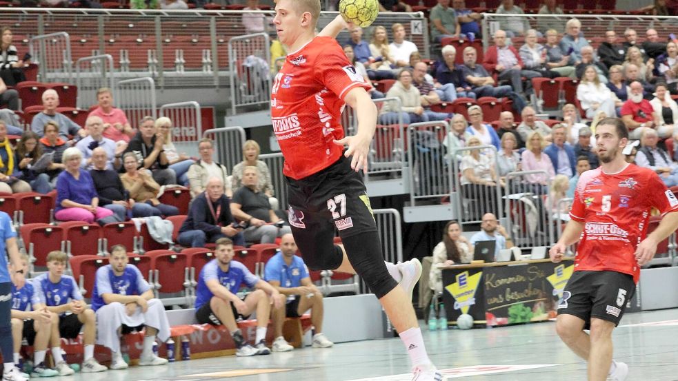 Rostyslav Polishchuk führte die Auricher in Ahlen als Kapitän an und war mit zwölf Toren der erfolgreichste Werfer beim Auswärtssieg. Foto: Helmut Vortanz