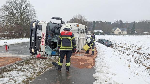 Der Fahrer eines hinter dem unfallverursachenden Lastwagen fahrenden Kleinlasters konnte einen Zusammenstoß durch Ausweichen verhindern und blieb unverletzt. Der Gesamtschaden wird auf über 200.000 Euro geschätzt. Die Straße war für die Unfallaufnahme und Aufräumarbeiten mehr als zwei Stunden gesperrt. Vor Ort waren neben Rettungsdienst und Polizei auch die Freiwilligen Feuerwehren Mollberg und Spohle, die Wasserbehörde sowie mehrere Abschleppfahrzeuge.