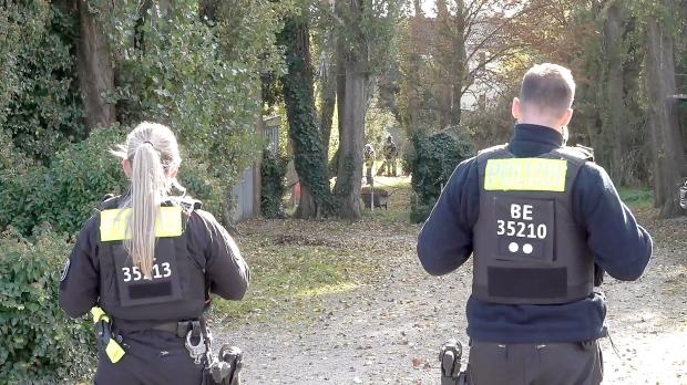 Rund 115 Kräfte der Berliner Polizei und des Bundeskriminalamts sind deshalb ab 9.00 Uhr im Einsatz, um nach Beweismitteln zu suchen. Auf dem Gelände steht ein Haus, mehrere Briefkästen sind von außen zu sehen. Das Grundstück selbst ist an einer Seite von großen, hochgewachsenen Bäumen umgeben.