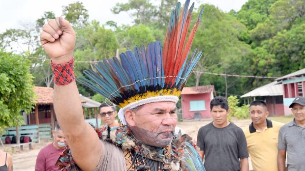 Der Protestzug wurde angeführt von Indigenen, die in Brasilien ihre angestammten Gebiete - unter anderem im Regenwald - gegen Agrarkonzerne, Holzfäller und illegale Goldschürfern verteidigen müssen.