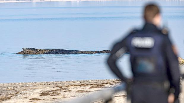 Es sei wichtig, dass sich Unbeteiligte dem Tier nicht nähern, um es nicht noch mehr zu stressen, sagte der Polizeisprecher. Weder aus der Luft, etwa mit einer Drohne, noch von Wasser- oder Landseite aus. Der entsprechende Bereich um den Niendorfer Hafen sei abgesperrt worden.