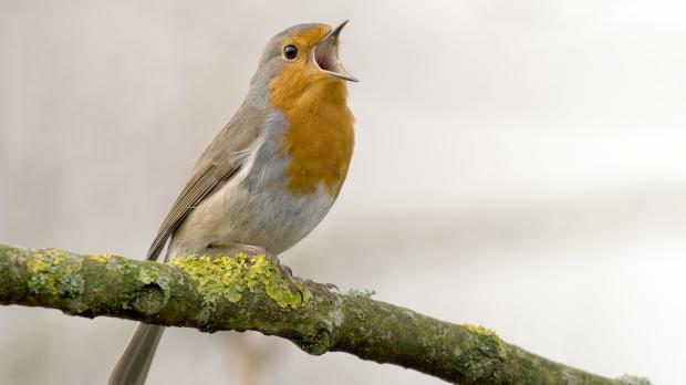 Der Gesang des Rotkehlchens ist eine Abfolge hoher Töne, die laut Nabu in einer perlenden Strophe enden. (Symbolbild) Foto: Patrick Pleul