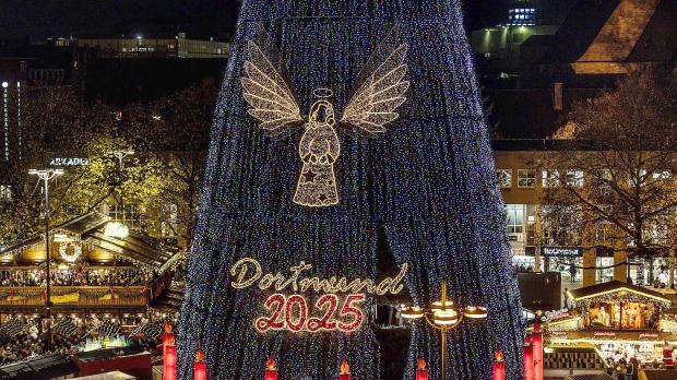 XXL-Weihnachtsbaum in Dortmund leuchtet